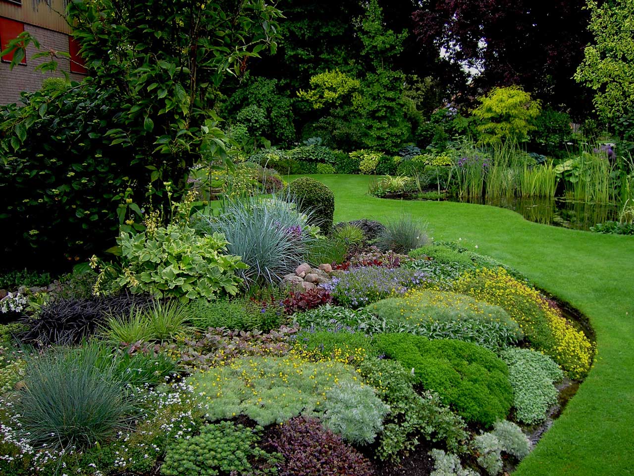 Door gebruik te maken van grijs-, rood- en bontbladige planten, heesters en bomen is hier een tuin gecreëerd die van maart tot in oktober blijft boeien, ook ZONDER bloei.